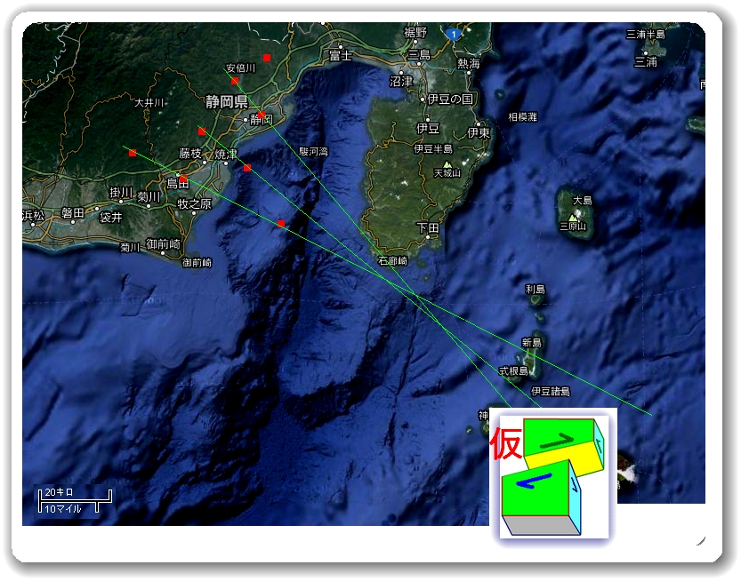 >単発ではなく余震がありました >hinetのデータです > 4/11 09:45 35.0864 138.3485 20.6km M 2.5 > 4/12 05:17 35.0809 138.3406 20.4km M 0.5 > 4/12 05:26 35.0751 138.3583 21.6km M 0.8 久々にメールで届けられた「数値」。 今回は今までのような「~してください」的な要望はありませんが、 某所のレスを踏まえてのメールという事からすれば、 余震も加えて分析して欲しいという意図?・・・w (本震+余震2つでナニヲスレバイイノカワカラナイ ←本音) 一元化データが出れば無意味になるだろうと思いつつ、 無理矢理=強引に単純化 |