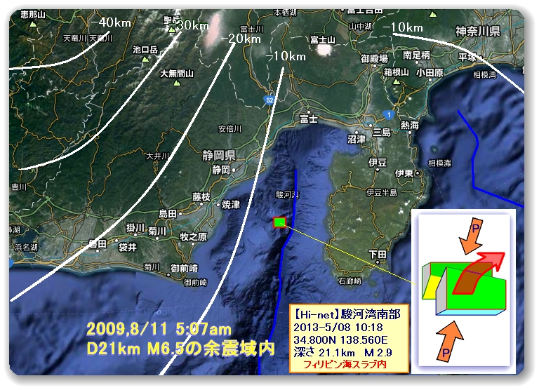 10時過ぎの駿河湾、震源球が拾えずというかボールの有無自体不明なので、一般論での想像。 |