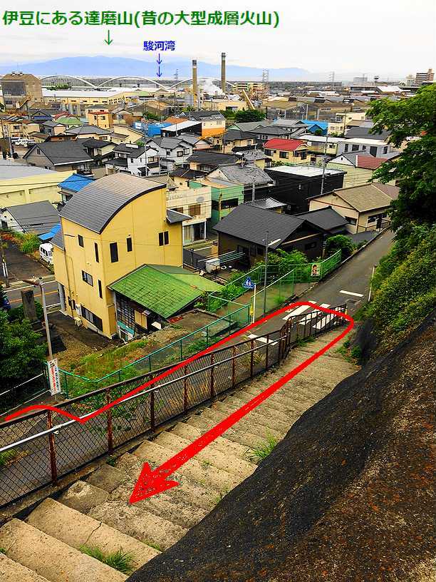 帰路に立ち寄った岩淵(現富士市:旧富士川町)の岩淵一里塚跡 江戸時代の街道(東海道)は、 暴れ川だった富士川の氾濫水害を避ける為に、 河岸段丘の上を通していました 現地付近の河岸段丘はこんな感じ かなりの崖になっています 上の写真中央上・左寄りにあるAP付近からの眺め 上って来た階段など 一里塚の先で見つけたパン屋さん |