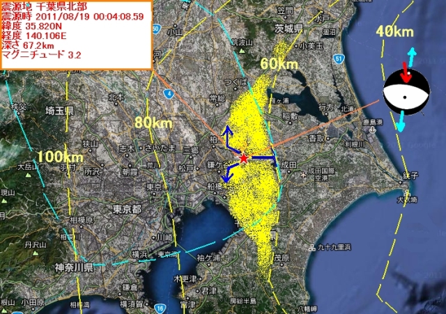 本来のプレート進行であればほぼ東西方向での力が発生する場所で、