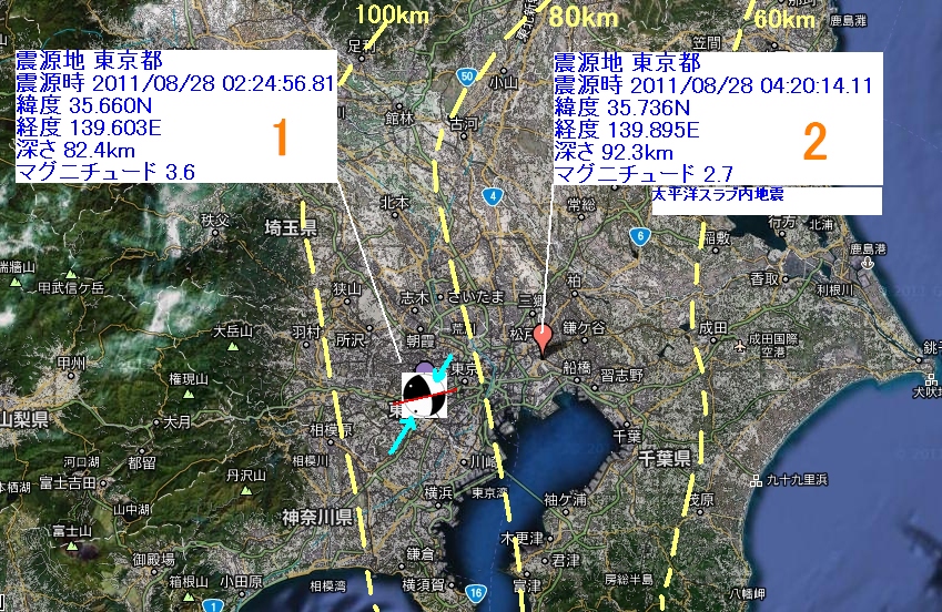 1発目でフィリピン海プレート(もしくはフィリピン海プレートに押されたフラグメント)の