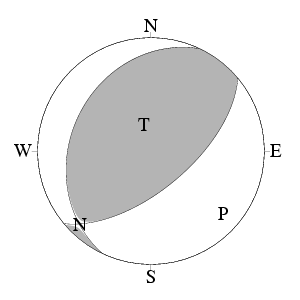 ほぼ境界面と思われる震源ですが、 南北張力軸による正断層型。 規模が小さく断層面としては数百メートル程度で、 何かの前兆というモノではありませんが、 珍しいので採り上げてみました。 |